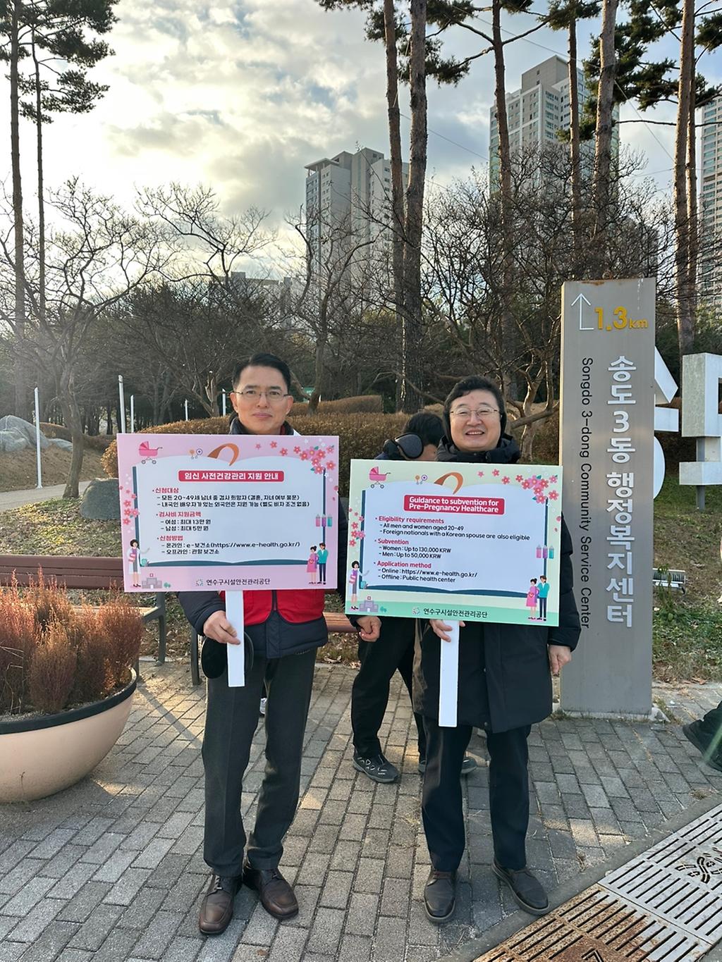 ○ 내 용: 누리공원에서는 출퇴근 시민을 대상으로 임신 전 사전검사 지원제도 등 현실적인 저출산 대응 정책 안내 및 외국인을 위한 영문 홍보물 배포 등