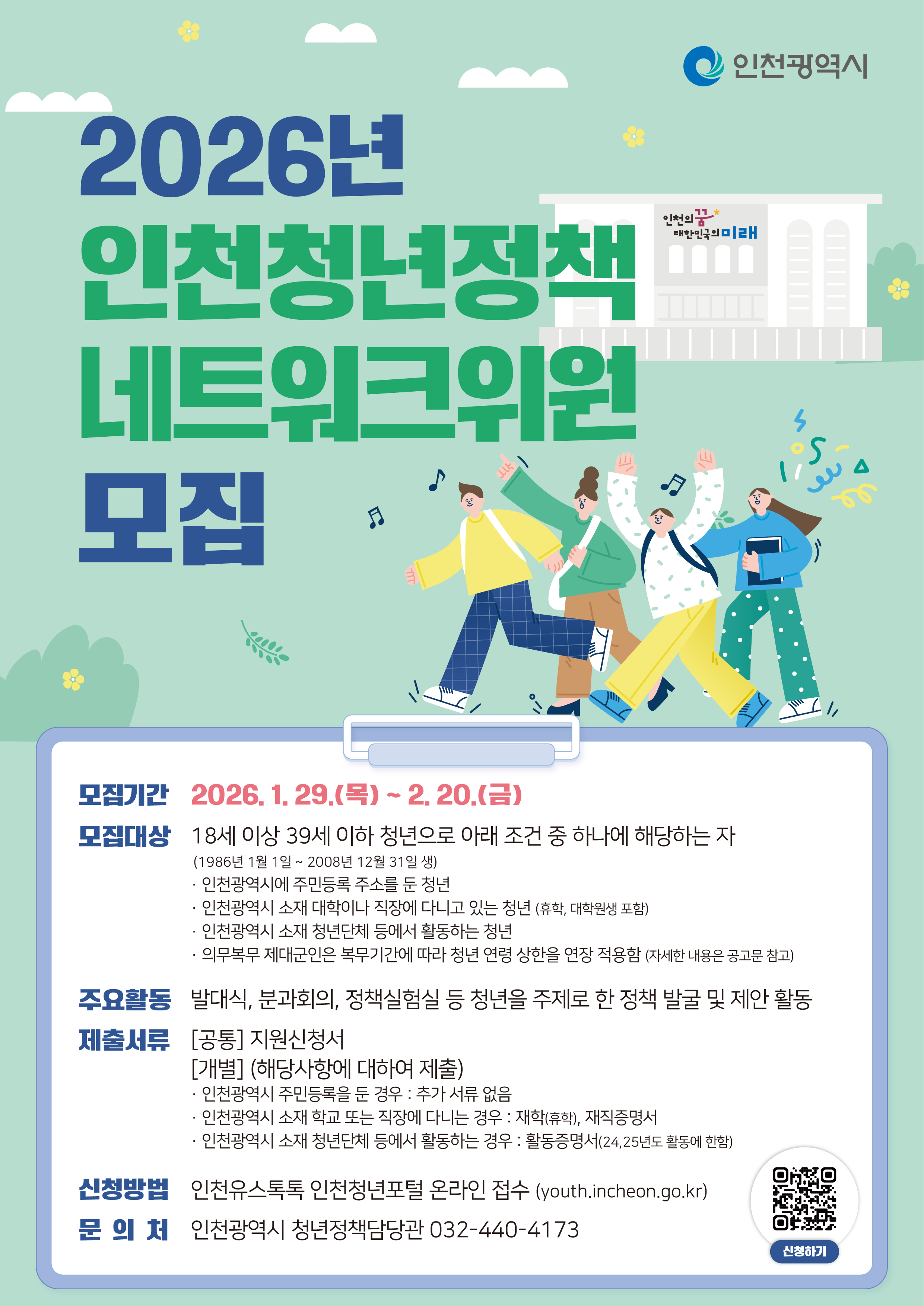 2026년 인천청년정책네트워크 위원 공개모집 안내