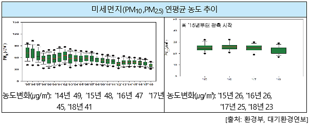* 발생 원인과 상관없이 입자의 크기가 10μm 이하의 먼지로, 10μm 이하인 PM(particulate matter)10과 2.5μm 이하인 PM2.5로 구분